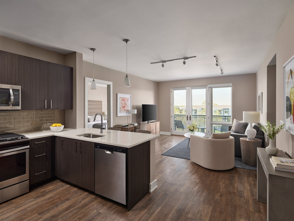 Ideal untuk para profesional yang menghargai desain modern dan layanan yang ramah, valet dry cleaning & penerimaan paket. Nikmati sinar matahari di kolam renang bergaya resor musiman kami atau bersantai di lounge api unggun. Nikmati memanggang di dapur luar ruangan kami yang lengkap. 🚆 Cocok untuk Komuter ~ Menit dari transit ke NYC 🛋️ Tempat Liburan 2 Kamar Tidur yang Luas ~ HDTV di ruang tamu & kamar tidur 💼 Bekerja dari Mana Saja ~ WiFi berkecepatan tinggi di seluruh area Fasilitas 💪 Bergaya Resor ~ Pusat kebugaran canggih seluas 3.600 kaki persegi