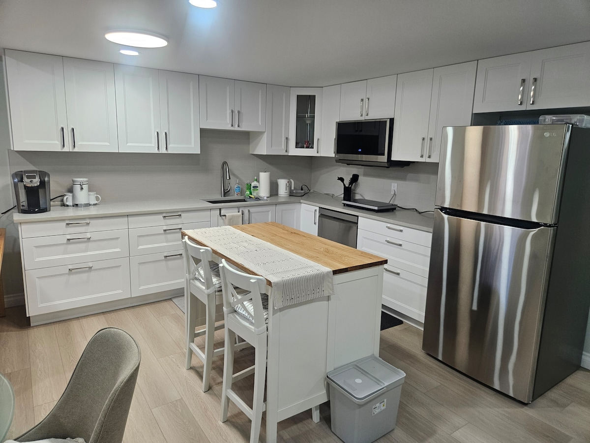 Suite tamu pintu masuk pribadi | 2 kamar tidur besar | Dapur lengkap | Penatu | Tempat Tidur 4 orang Bersantai, segarkan, perbarui. Suite ruang bawah tanah yang cukup terang dan luas ini memiliki dua kamar tidur dengan tempat tidur queen dan double, pemanas radiasi di lantai, dan perapian sekitar. Smart TV dengan kabel premium dan wifi disertakan. Dapur ukuran penuh berfasilitas lengkap dengan perlengkapan. Shower walk - in. Mesin cuci/pengering di dalam kamar mandi. Suite ini menawarkan segala yang Anda butuhkan untuk masa inap jangka pendek atau jangka panjang. Tanyakan kepada kami tentang diskon bulanan.