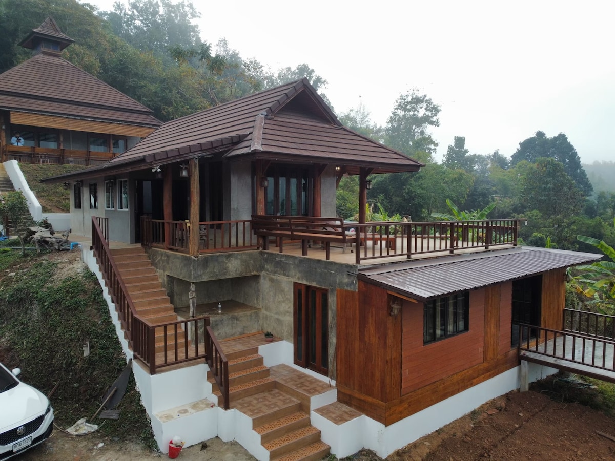 Tempat peristirahatan di lereng bukit yang terpencil hanya 7 menit dari kota, menawarkan pemandangan Sungai Pai yang menakjubkan dalam kemewahan yang tenang.