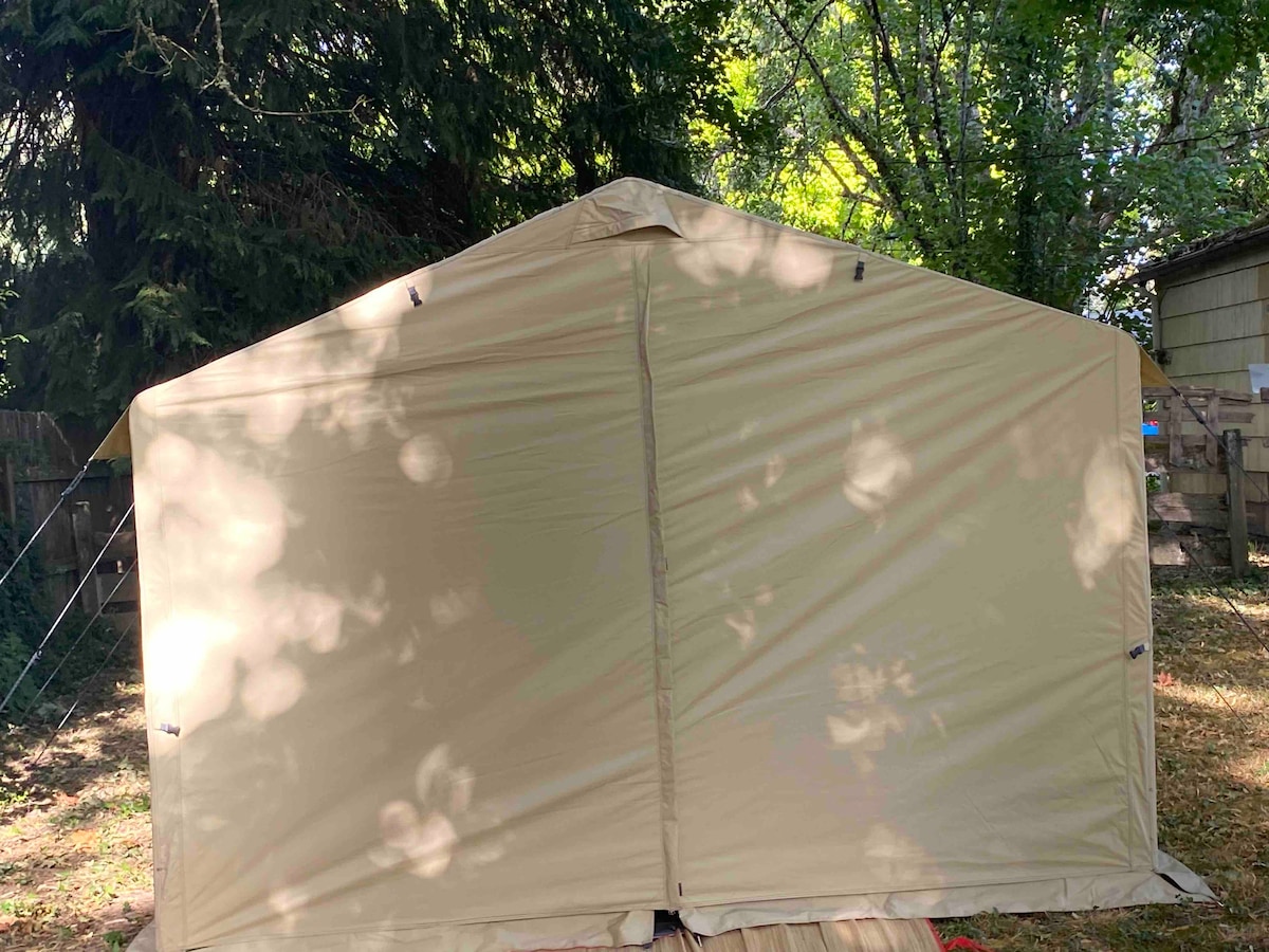 🌿 Serene Retreat: Private Oasis 30 menit dari PDX Larikan diri ke suaka hutan seluas 5 hektar yang tenang dengan tenda dinding 4 musim yang nyaman dan dapur kecil. Kamar mandi pribadi di rumah utama hanya 140 kaki naik tangga kerikil dari tenda Anda. Nikmati lintas alam, bersepeda, tur anggur, golf, dan pemandangan indah—hanya 1 jam ke pantai. Sangat cocok untuk liburan romantis, liburan pribadi, atau liburan yang dipenuhi alam. Nikmati pesona pedesaan, kenyamanan modern, pemandangan kolam, dan taman lanskap. Pesan sekarang untuk liburan pribadi Anda.