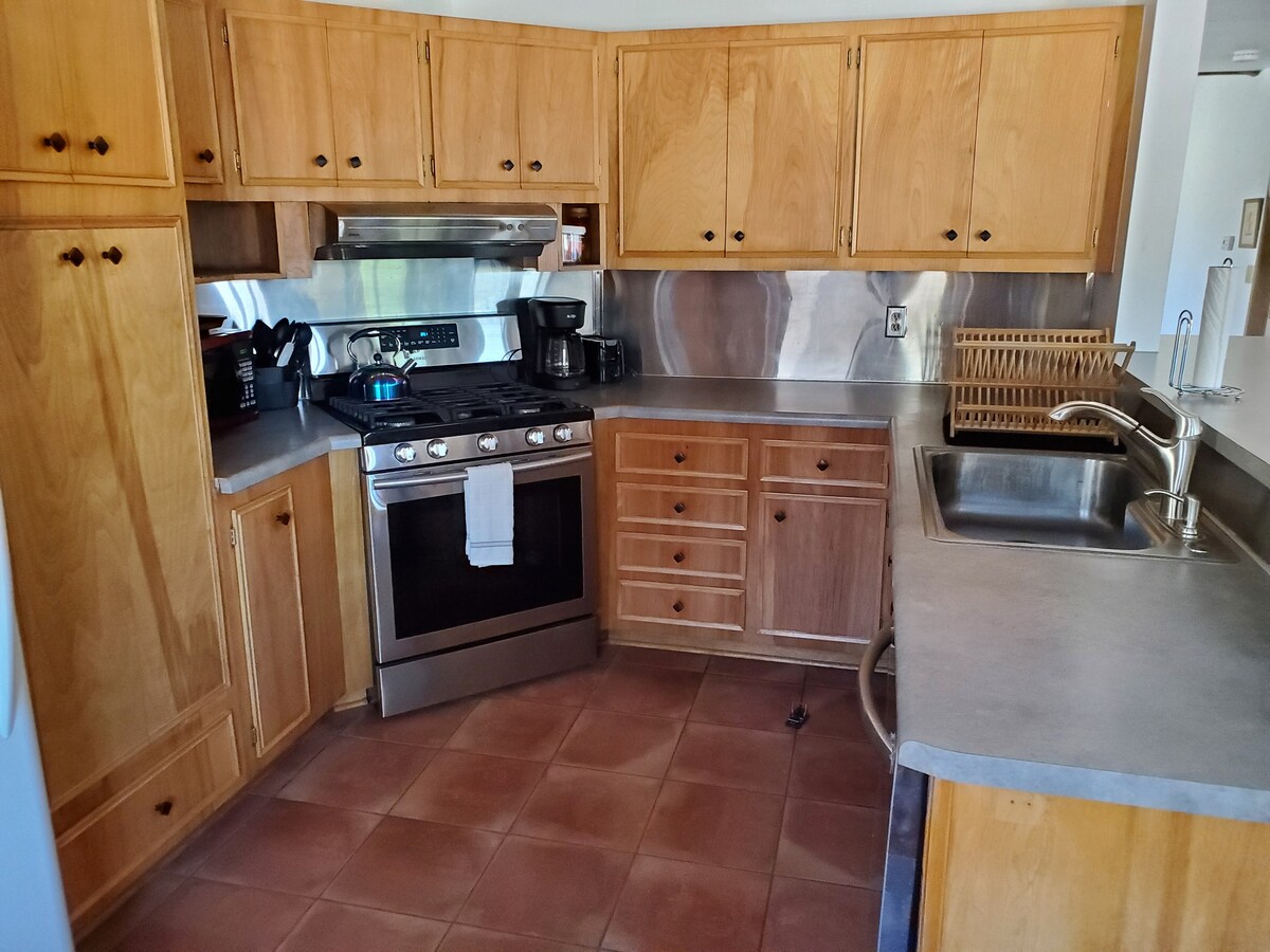 Tenang saja di tempat liburan yang unik dan tenang ini. Berjalan keluar dari pintu depan dan ke pegunungan untuk berpetualang atau bersantai di bawah pohon ek yang damai dan cukup mengisi ulang. Rumah bata adobe klasik ini menampilkan kemewahan sederhana. Dengarkan celoteh anak sungai, berlari atau mengaum saat hujan turun. Amati sumber kehidupan gurun dari jembatan pribadi yang melintasinya. Bawalah kuda atau berkemas kambing dan biarkan berkeliaran di paddock. Rendam keheningan dan nikmati malam berbintang yang jauh dari lampu - lampu kota.