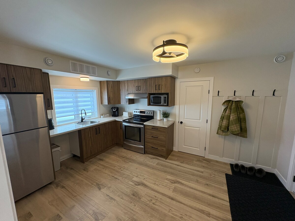 Kecil namun hebat, suite Winkler yang ringkas ini menawarkan gaya, kenyamanan, dan keseimbangan yang sempurna untuk masa inap Anda. Studio yang nyaman ini dirancang dengan cermat untuk menawarkan semua yang Anda butuhkan untuk masa inap yang santai, semuanya dalam tata letak yang bersih, modern, dan tertata dengan cerdas. Yang Akan Anda Cintai: ✔ Pintu masuk pribadi, suite mandiri — tidak ada ruang tamu bersama ✔ 3-Piece Bath Dapur Kecil ✔ Berperabot Lengkap ✔ Kulkas/freezer mini Tempat Tidur ✔ Queen Size. ✔ Smart TV ✔ Pencahayaan Modern & Desain Bersih ✔ Lokasi Strategis