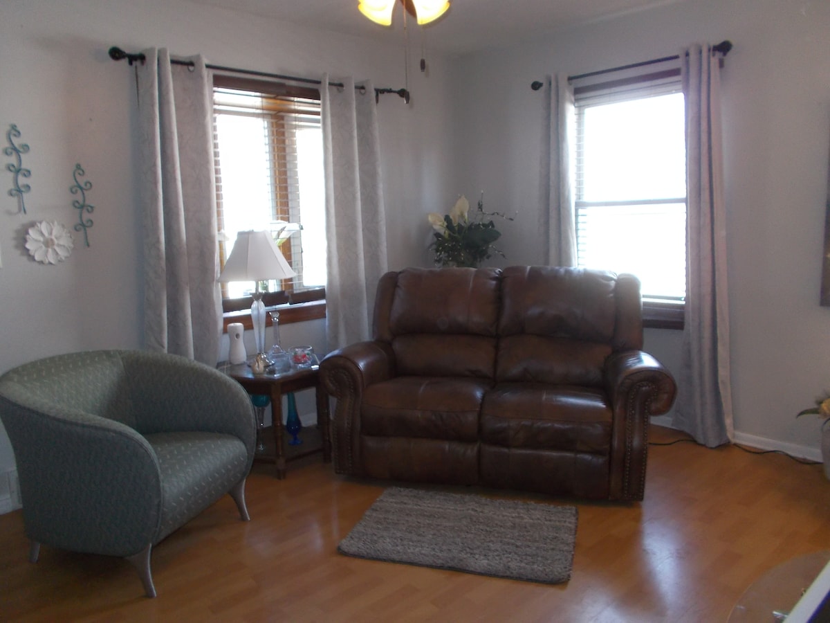 Inilah rumah keluarga tunggal yang baru direnovasi! Tempat ini kecil namun memiliki semua yang Anda butuhkan untuk menikmati waktu bersama keluarga dan teman selama Anda menginap di area Chicagoland! Ada dua kamar tidur masing - masing dengan tempat tidur queen, kamar mandi yang diperbarui, ruang makan dengan tempat duduk untuk 6 orang, ruang tamu yang nyaman dengan tempat tidur sofa queen pull - out Crate & Barrel, dan dapur yang bagus dan diperbarui! Ada mesin cuci dan pengering baru di ruang bawah tanah. Ada meja teras yang bagus di luar juga di halaman pribadi. Selamat datang!