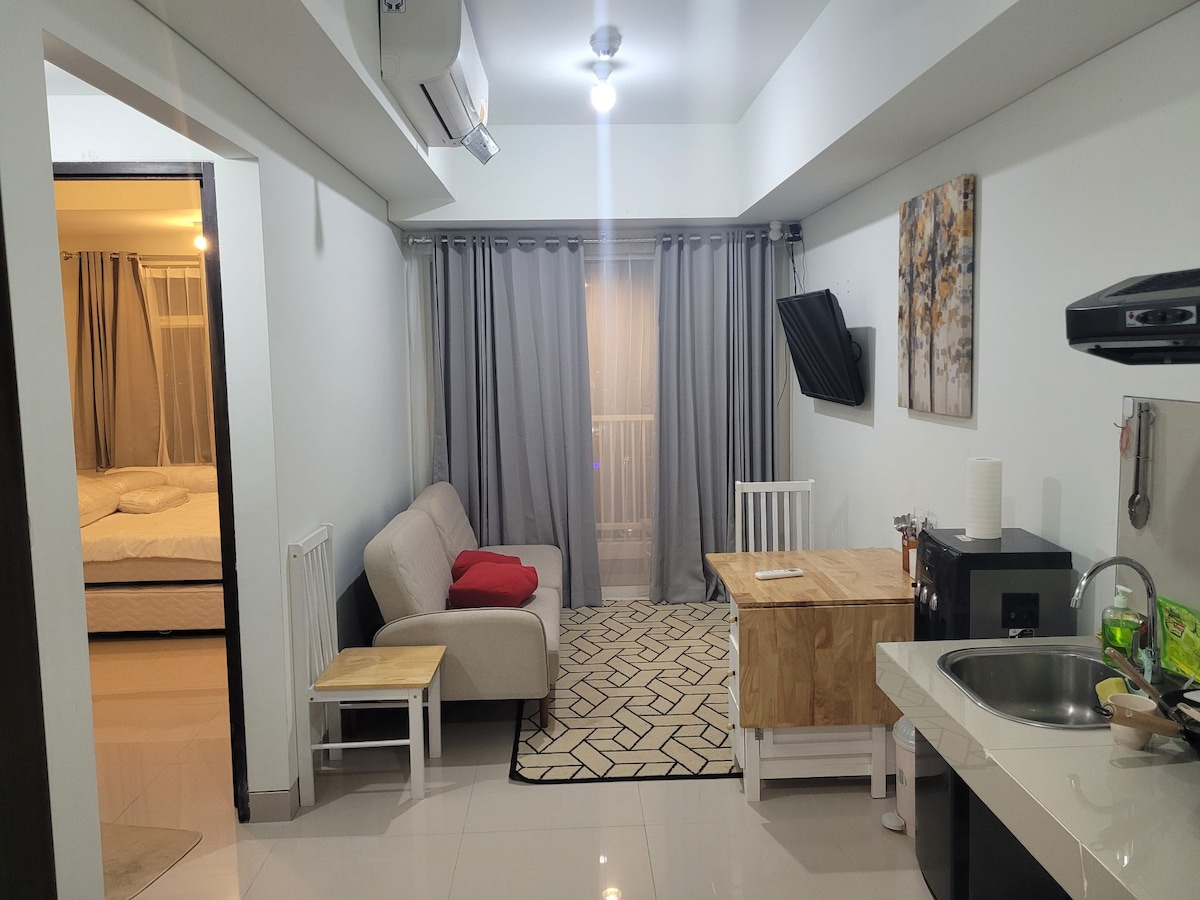 Elegant Studio Apartment with Access to Mall at Tanglin Supermall Mansion - Surabaya Full Furnish (Spec & Facilities): - Queen Bed 160 x 200 - Sofa Bed (can be Unfold into single bed matress) - Aircon - Lemari Baju - Kitchen Set - Panoramic city view - 2nd Floor - Smart TV 32" - Wifi - kulkas & Frezzer - Meja Makan Public Facilities : - Pool (1st Floor) - Gym (Ground Floor)(GF) - Laundry (Ground Floor)(GF) - Pakuwon mall direct access (Ground Floor)(GF)