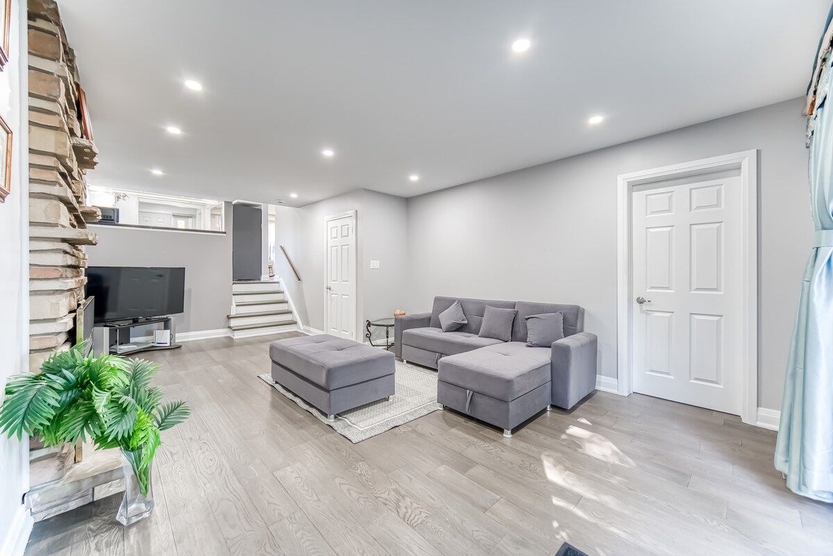 Nikmati masa inap yang bergaya dan damai di unit satu kamar tidur di lantai bawah yang berlokasi di pusat kota ini, cocok untuk pelawat wisata dan bisnis. Dengan pintu masuk pribadi, parkir, dan semua perlengkapan dasar, ini adalah rumah ideal Anda saat jauh dari rumah. Fitur termasuk dapur lengkap, kamar mandi, internet, smart TV, satu Queen dan satu tempat tidur sofa, dan ruang kerja fungsional. Beberapa langkah dari FreshCo, Walmart, restoran, dan layanan. Menit ke Vaughan Mills, Canada's Wonderland, Cortellucci Hospital dan transit.