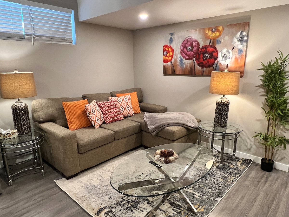 Brand New Cozy 1-Bedroom Basement Suite in Rosewood - Guest suite for Rent in Saskatoon, SK, Canada- Airbnb. Our beautiful brand new & tastefully furnished, well spacious 756 sqft 1 Bed Basement suite is situated in one of the best residential neighborhoods in Saskatoon. The Rosewood Meadows boasts great serenity, and play parks and is three minutes away from the grocery store, gym, and other amenities (Costco, McDonald's, KFC, H&M, Sephora, etc) open to the public.