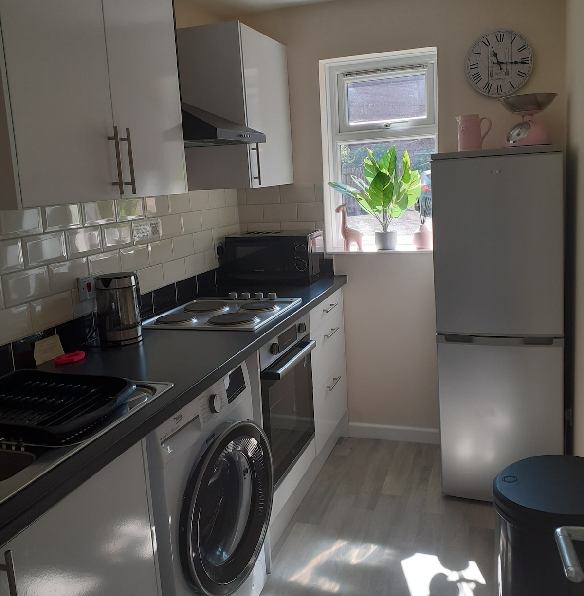 A one bedroom ground floor flat with 2 parking spaces. The city centre and train stations are a few minutes walk away as is the A5, Toll road and the A38 - ideal too for business trips. Lichfield offers a wealth of attractions for tourists, with great pubs and restaurants. Fitted out to a high standard, the flat comprises of an open plan lounge/dining room. A well equipped kitchen and a bathroom with bath and shower over. Tea, coffee, sugar, milk, orange juice and cereals are complimentary.