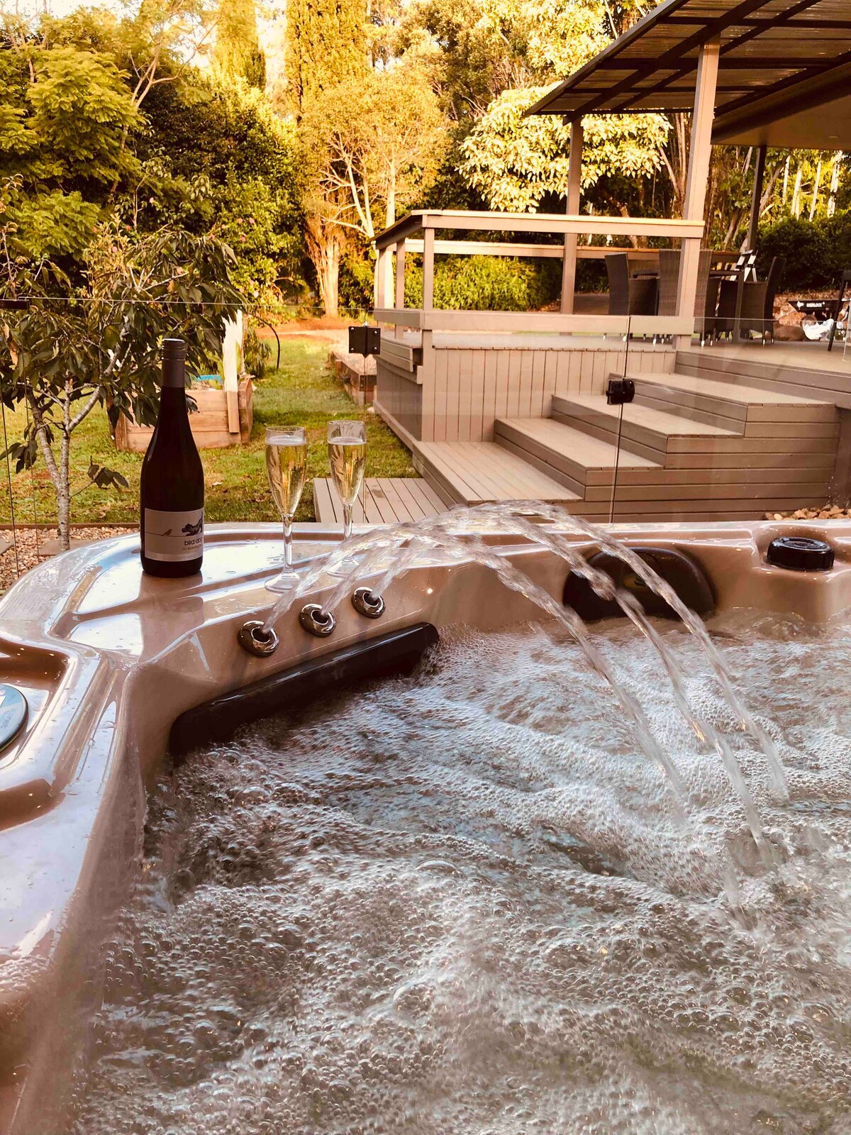 Berliburlah ke tempat peristirahatan terpencil yang penuh alam ini Berendam di bak mandi luar ruangan berukuran besar di bawah bintang-bintang (termasuk mandi busa!), bersantai di sekitar perapian dengan marshmallow, dan pencahayaan festoon sekitar, atau bersantai di interior yang nyaman dan bergaya serta kenyamanan modern. Liburan romantis yang sempurna atau liburan solo yang damai. Catatan: kami berada di Tamborine, bukan Gunung Tamborine. 7 menit ke Hotel Bearded Dragon 7 menit ke Coles/toko botol/Ahli Kimia dll. 50 menit ke Brisbane City 1 jam ke pantai Gold Coast