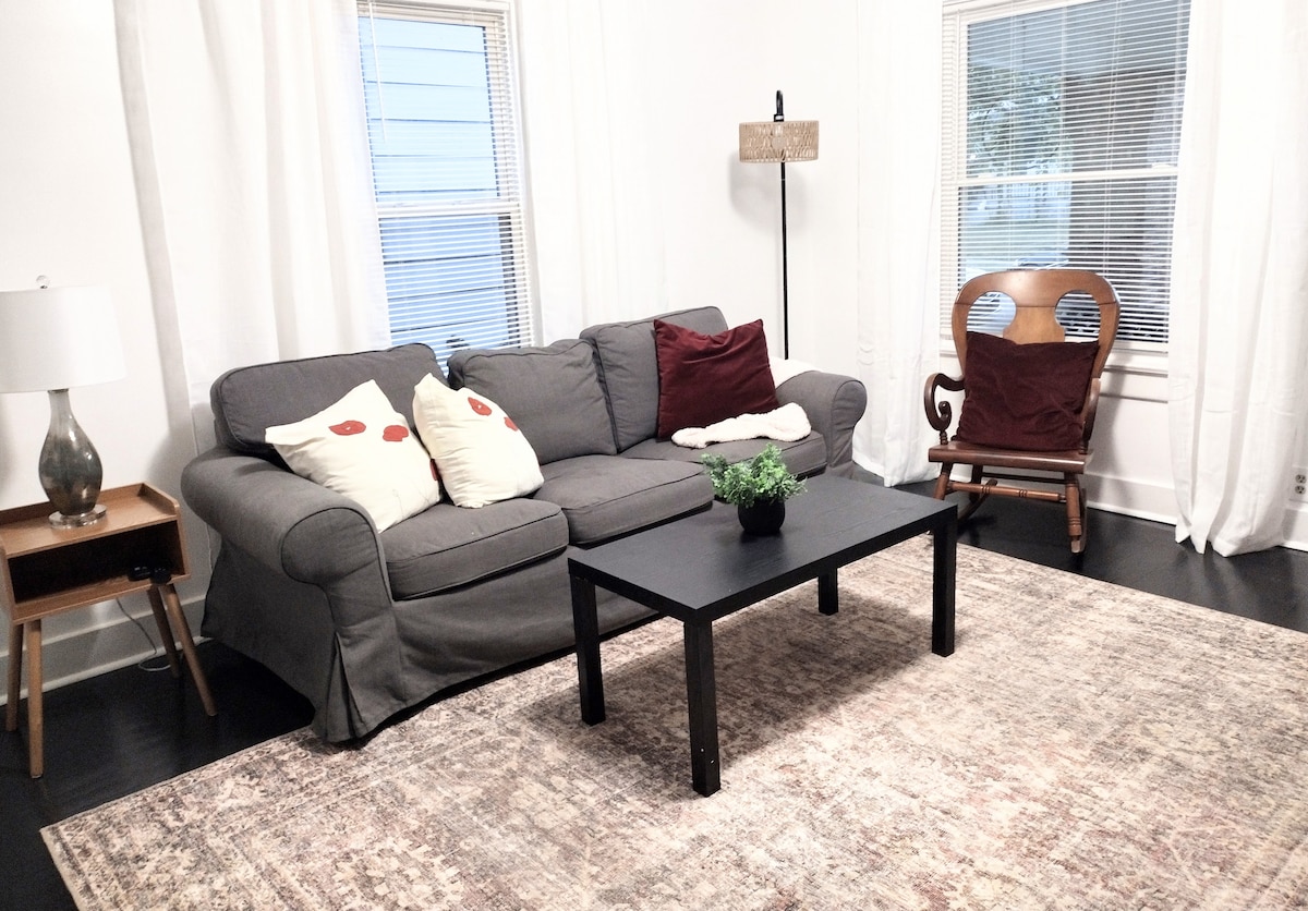 Guesthouse 2 tempat tidur/1,5 kamar mandi satu lantai yang diperbarui ini cocok untuk perjalanan dinas, perjalanan berkelompok, bersenang - senang, atau kunjungan keluarga. Dapur memiliki piring, peralatan memasak, dan perlengkapan dasar dapur (minyak, bumbu, gula & tepung). Disediakan mesin pembuat kopi satu saji dan karafe dengan k - cup dan filter kopi. Wisma ini memiliki dua ruang tamu, ruang makan, dapur, ruang utilitas dengan mesin cuci dan pengering, teras pribadi dengan tempat duduk luar ruangan, dan pemanggang.