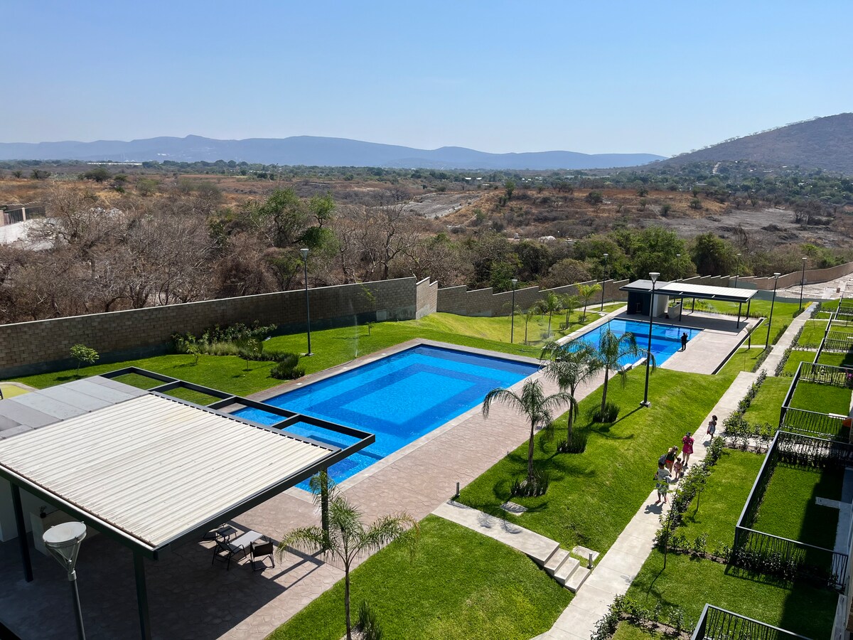 20 menit dari pusat Cuernavaca, lengkap dan sangat nyaman, memiliki 2 kamar tidur dengan AC c/u, 2 kamar mandi lengkap dan 1/2 kamar mandi di PB, teras, ruang makan, dapur dan teras layanan, yang akan membuat hari - hari Anda nyaman dan menyenangkan. Yang pribadi memiliki kolam renang dengan chapoteadero (untuk anak - anak kecil), permainan anak - anak, dan palapa tempat Anda bisa menghabiskan hari yang tenang bersama keluarga dan/atau teman - teman. Selamat datang!