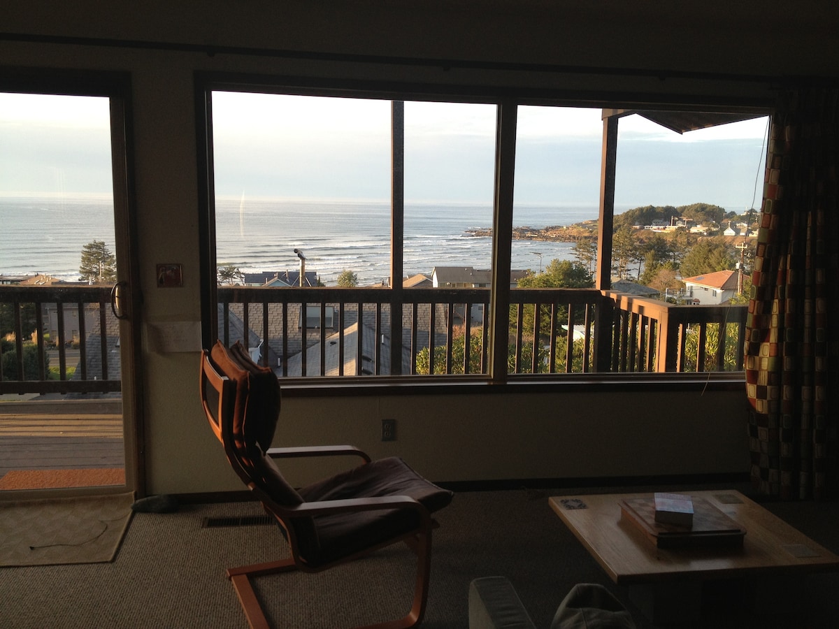 Jika mencari rumah yang nyaman dengan pemandangan laut yang menakjubkan dalam jarak berjalan kaki dari restoran dan toko Yachats, rumah kami cocok untuk Anda! Saksikan ombak bergulung, matahari terbenam, burung - burung terbang, dan terkadang paus dan singa laut dari rumah kami yang nyaman. Berburu agate di pantai pasir yang berbau dan jelajahi kolam air pasang tepat di depan rumah, berjalan menyusuri jalur 804 terdekat ke pantai berpasir sepanjang 8 mil, atau pergilah ke Cape Perpetual di dekatnya untuk mendaki.