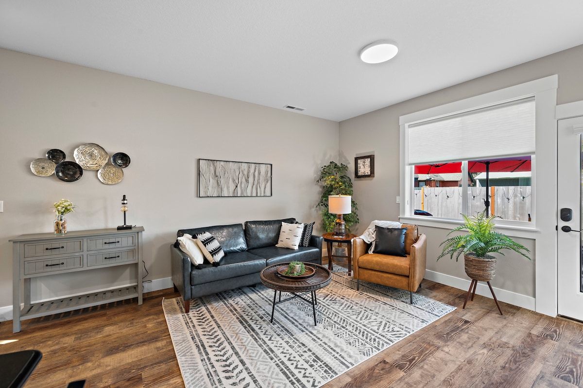 Suite yang diperbarui ini adalah unit yang benar - benar pribadi yang siap dinikmati. Pintu masuk terpisah Anda sendiri, dek besar yang menghadap ke taman, dan ruang yang cukup untuk bersantai. Berjarak 10 menit berjalan kaki ke pusat Newberg dengan nuansa pedesaan. Di jantung Chehalem Valley dalam waktu 10 menit berkendara ke 50+ kilang anggur, dan banyak area indah untuk dijelajahi di dekat Anda. Dirancang untuk individu atau pasangan.