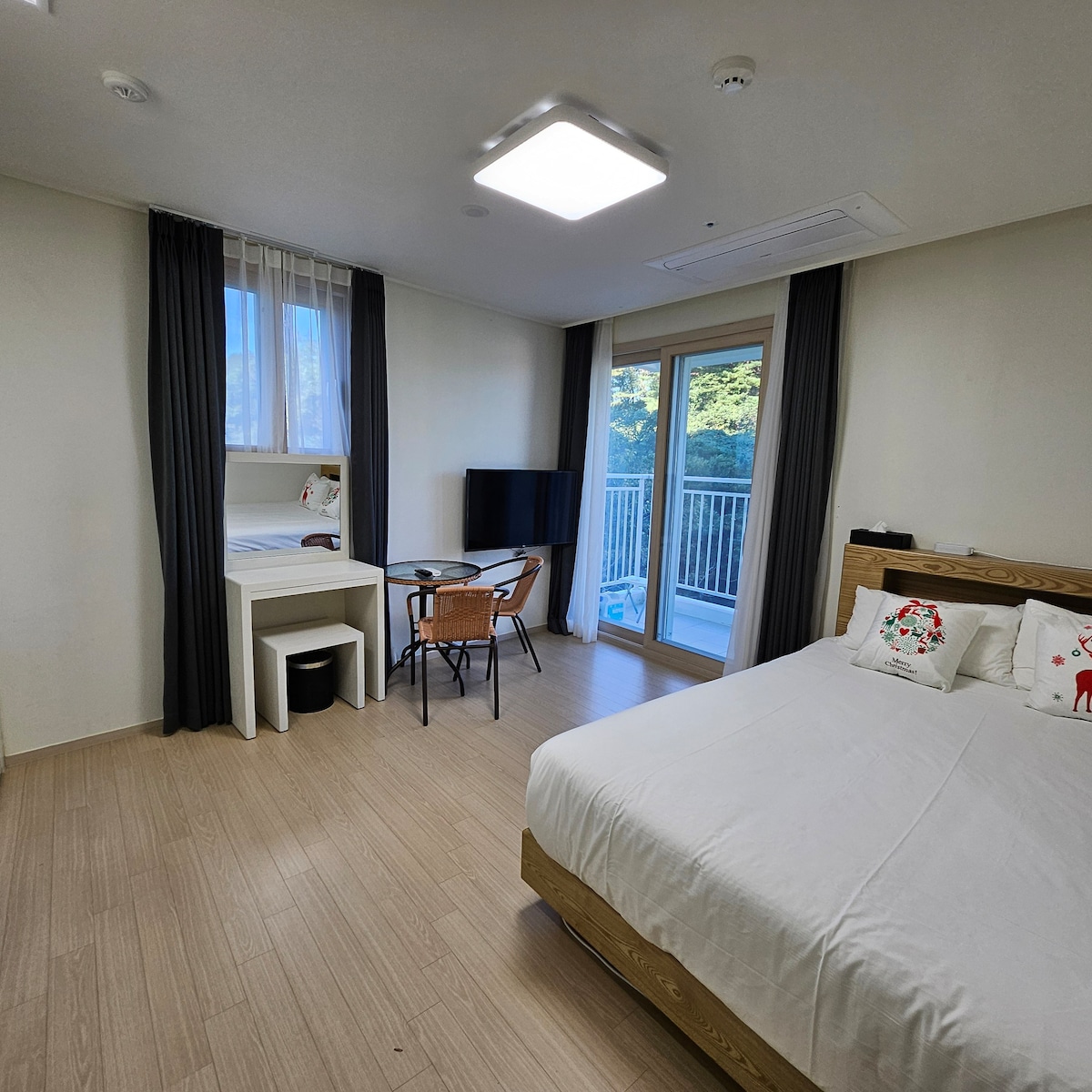Ini adalah kamar hotel vila pribadi saya, Pemandangan Laut yang Indah. Sarapan dan kolam renang tidak termasuk dalam ruangan ini saja. Anda bisa menggunakan gym lantai dua di Ocean - dong secara gratis. [Sarapan didiskon saat check - in, silakan merujuk ke situs web untuk informasi kolam renang.] Terletak di lantai 8 tempat Anda bisa bersantai, kamar ini memiliki pemandangan laut yang indah. Tempatnya dekat dengan lift, jadi mudah untuk berkeliling. Mesin es yang jarang ada di seluruh gedung terletak tepat di depan kamar saya. Ada berbagai fasilitas di hotel, dan laut dan pantai tersebar dalam 1 menit berjalan kaki, dan Sol Forest adalah tempat terbaik untuk berjalan - jalan. Kami tidak menawarkan pembuatan kamar (pembersihan) di tengah masa inap Anda selama lebih dari 2 malam. Oleh karena itu, jika Anda mewajibkan pembersihan menengah untuk masa inap berdurasi 2 malam atau lebih, harap ajukan permohonan di resepsionis hotel dengan biaya tambahan.[Untuk biaya kebersihan, kami hanya menerima biaya kebersihan check-out. Saya tidak berpikir saya perlu membersihkan untuk 35.000 won.] Tidak ada barang sekali pakai di ruangan ini. [Sampo, kondisioner, sabun mandi, sabun cuci tangan, dan pengering tersedia.]