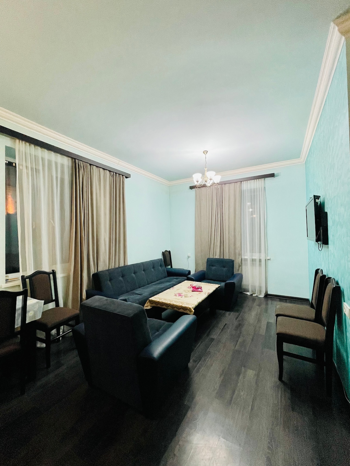 Apartemen indah yang direnovasi sepenuhnya di gedung baru. Apartemen terletak di pusat kota Yerevan, sekitar 5 menit berjalan kaki ke alun - alun republik atau jalan utara. Ada banyak toko kelontong, kafe, restoran di sekitarnya. Tempat ini berada di lingkungan yang tenang, memiliki pemandangan yang indah, juga ada taman di dekat gedung ini. Gedung ini dilengkapi dengan semua fasilitas, keamanan, pengumpulan sampah dari gedung, pemanas sentral, dll.