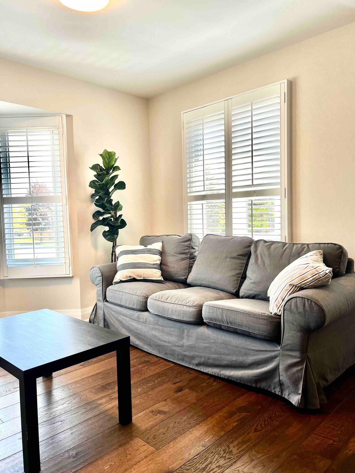 Apartemen lantai 1 yang nyaman & luas dengan pintu masuk pribadi, dapur & kamar mandi modern. 1 tempat tidur king & sofa bed yang bisa ditiduri 4 orang! Kenyamanan modern dengan sentuhan menawan dari perapian kayu bakar yang nyaman, ubin keramik, dan panel kayu wainscoting. Nikmati lampu alami yang mengalir di dalam atau di tempat duduk teras kami di halaman belakang yang sepenuhnya berpagar. Terletak dalam jarak 5-10 menit berjalan kaki ke Perpustakaan & Pusat Komunitas dengan kolam renang, Tim Hortons, Pasar Segar Greco, toko roti, kafe, toko serba ada, restoran, dll.