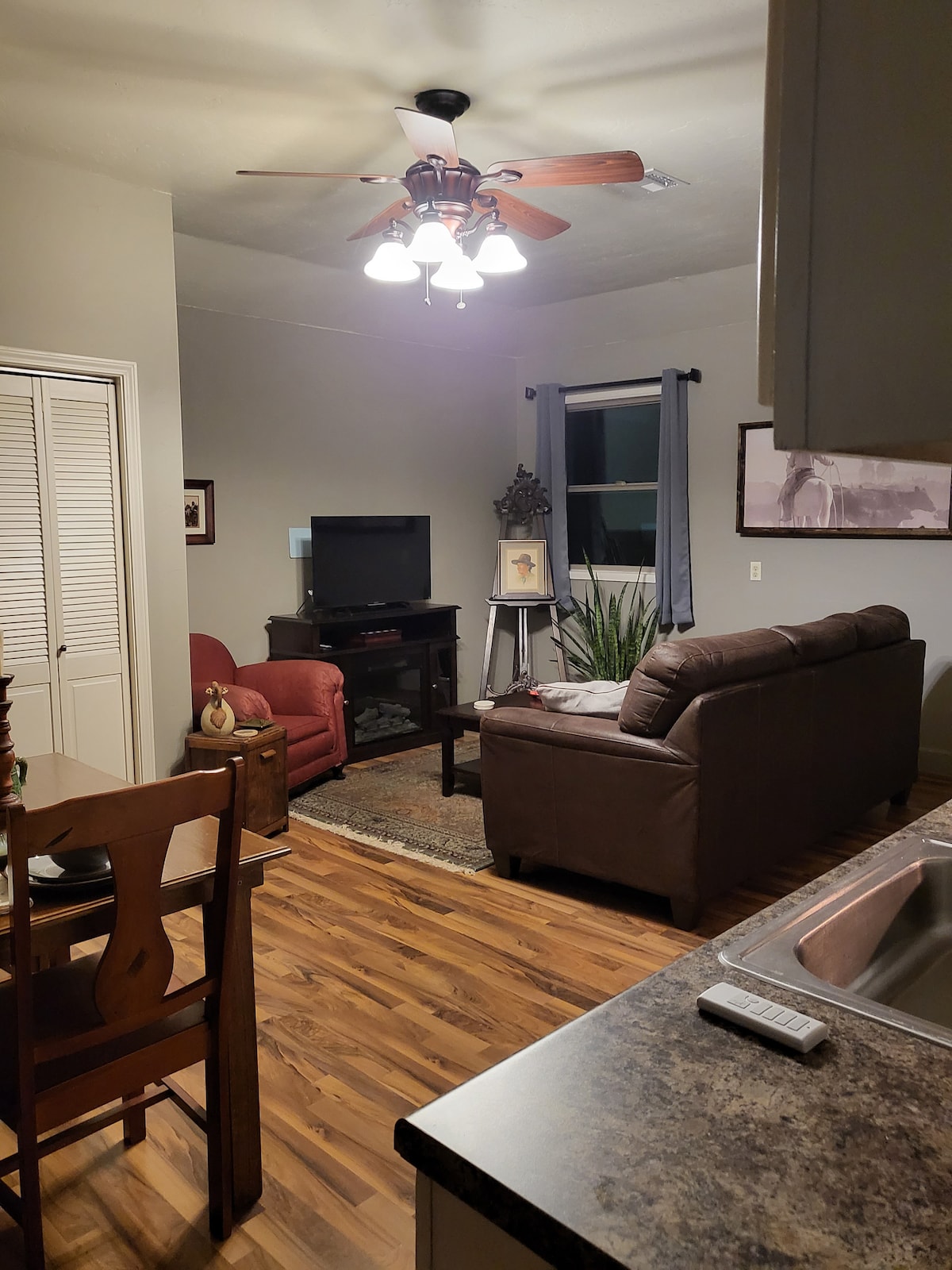 The Traveler's Nook di OKC adalah suite tamu yang nyaman dan lucu yang berlokasi strategis di NW kota. Suite baru dibangun. Tempat ini memiliki pintu masuk pribadi, teras yang menawan, kamar mandi bergaya, tempat tidur Queen size yang nyaman, tempat tidur sofa convertible, kulkas mini, Smart TV dengan semua aplikasi streaming utama, dan kedai kopi dengan pembuat kopi dan microwave. Piring, cangkir, peralatan makan perak, dan gelas disediakan!