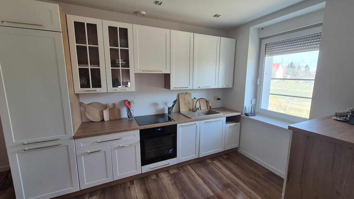 Apartemen besar di lantai atas rumah, dengan dua kamar tidur, ruang makan, ruang tamu, dapur, dan satu kamar mandi, di rumah terpisah di tepi hutan, di pinggiran permukiman kecil, menawarkan reservasi singkat atau panjang. Anda bisa bersantai di sini sendiri, bersama keluarga atau teman-teman Anda. Di properti ini terdapat kandang burung dengan kawanan merak kecil. Tetangga langsung taman adalah hutan pinus dengan pesona iklimnya yang unik. Di dekatnya juga ada sungai pegunungan Kwisa.
