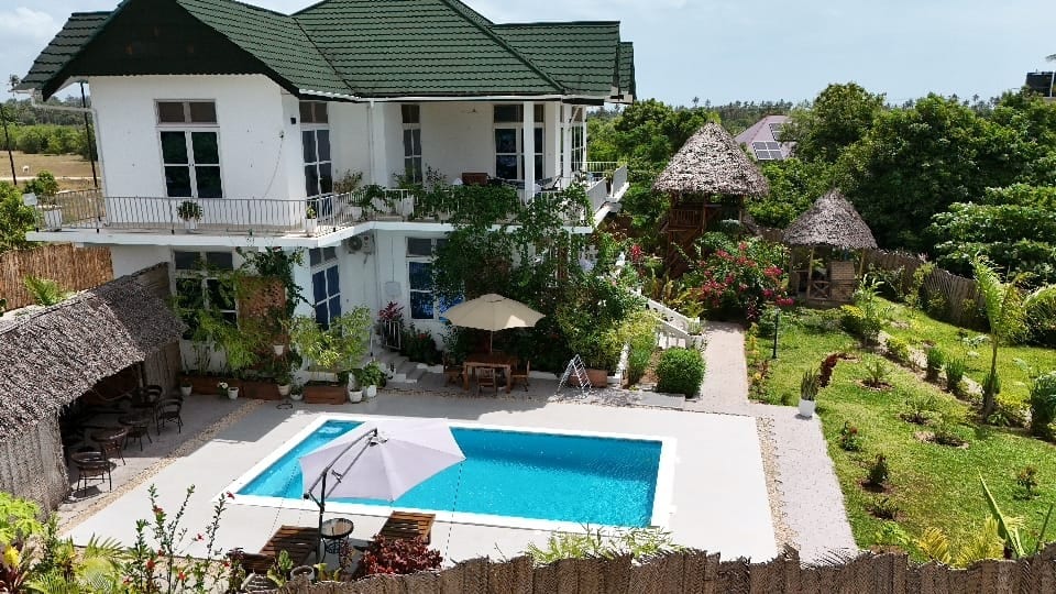 Sepotong surga yang terletak hanya 20 menit dari Stone Town. Sangat cocok untuk keluarga, grup, atau mereka yang merayakan momen istimewa. Masuklah ke vila dua lantai yang modern dan baru dibangun ini, di mana langit - langit tinggi dan pemandangan kolam renang berkilau menyambut Anda. Perabotan lengkap, dapur lengkap, kamar tidur luas dengan kamar mandi ensuite modern. Vila ini menawarkan perpaduan antara desain kontemporer dan kenyamanan di setiap sudut Menginap di lingkungan tinggal yang paling aman & ramah lingkungan di Zanzibar.