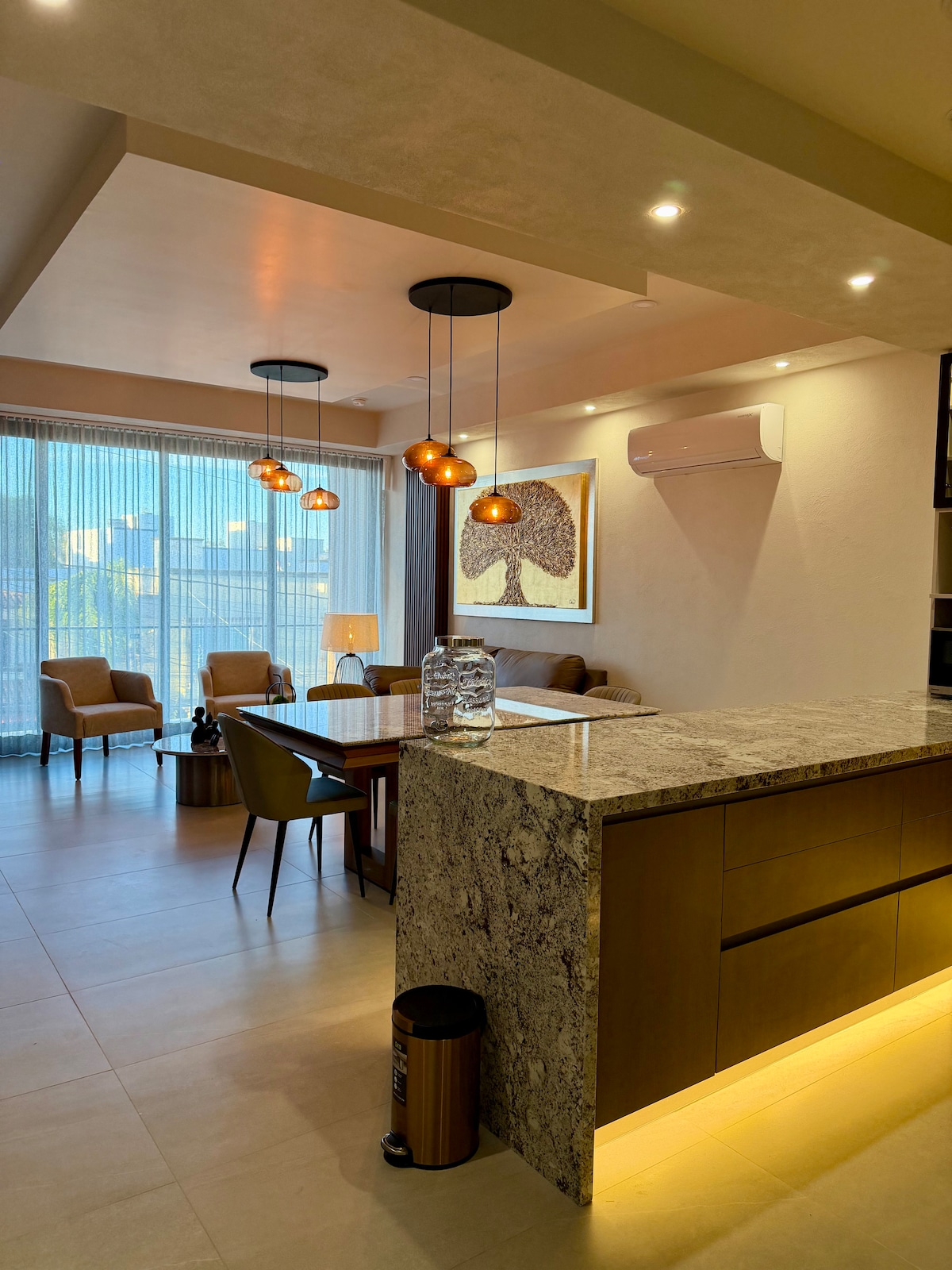 ✨ Nikmati masa inap eksklusif di Lobi 33, salah satu bangunan paling modern dan mewah di daerah Andares, di Zapopan. Apartemen elegan ini menawarkan: 🛌 2 kamar tidur dengan: satu tempat tidur king satu tempat tidur Queen 🛁 2 kamar mandi lengkap dengan finishing premium 🍳 Dapur dilengkapi dengan segala yang Anda butuhkan untuk memasak 🛋️ Ruang tamu dan balkon dengan pemandangan kota yang spektakuler 🖥️ WiFi berkecepatan tinggi ❄️ AC 🚗 parkir pribadi