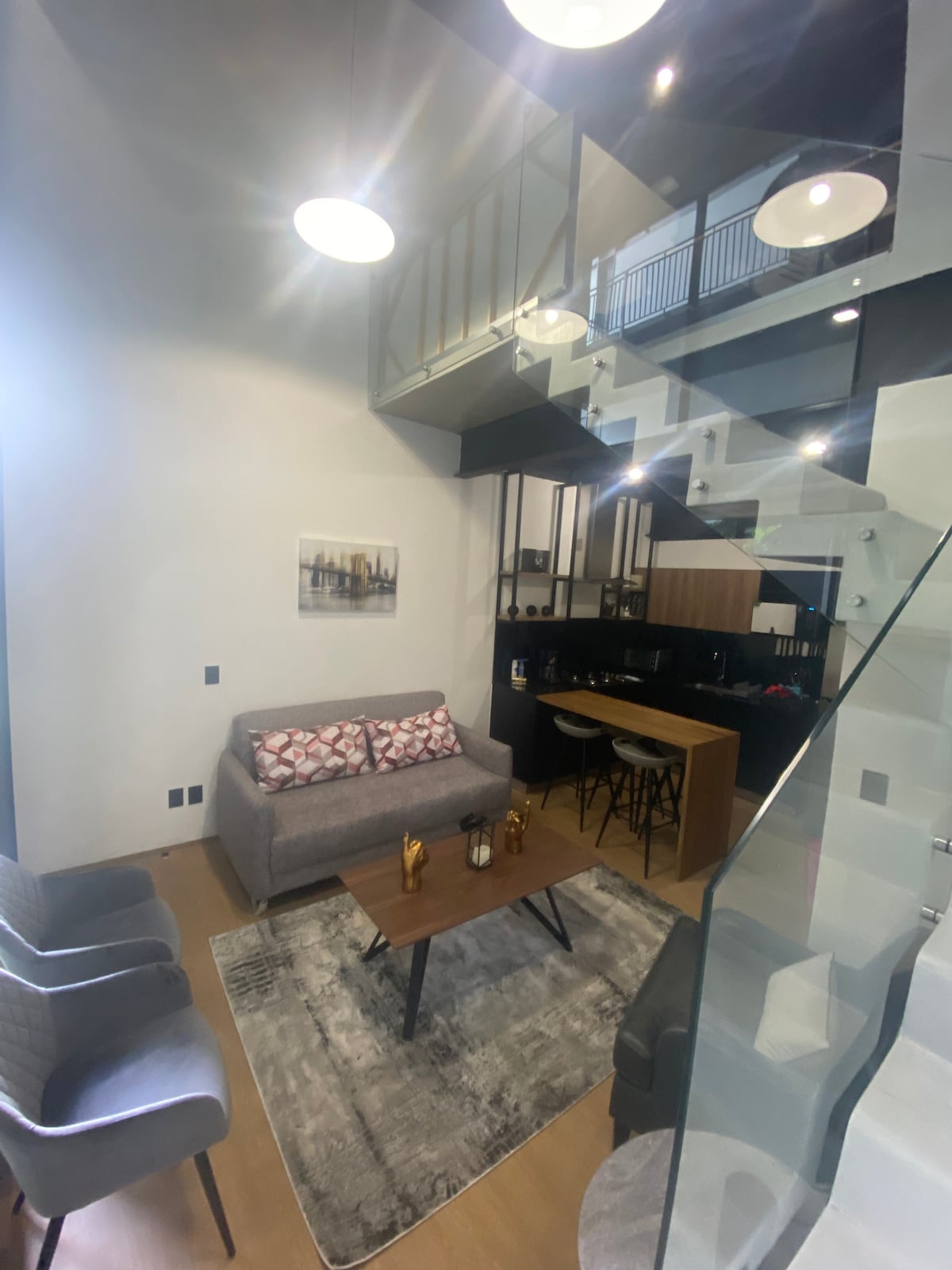Loteng unik di bagian terbaik kota. Semua kenyamanan yang Anda butuhkan. Pemandangan menakjubkan dengan teras pribadi. ————————————————— Loteng Unik di lingkungan tinggal paling menyenangkan di kota ini. Anda akan memiliki tempat yang indah dengan semua kenyamanan, ketenangan, dan privasi untuk menikmati masa inap Anda. Dari teras pribadi, Anda bisa menikmati pemandangan di seluruh Guadalajara.