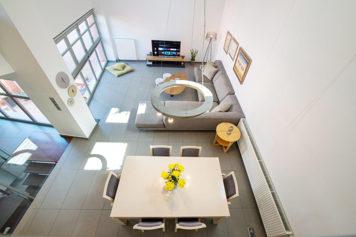 Acropolis view high - end 100 m2 penthouse, located 12' walk from Acropolis 2 Private Independent Suites ★ 2 Jacuzzi ★ 2 King Size bedrooms ★ 2 Luxury Full Bathrooms Balkon • Teras • Tempat tidur king size • Wi - Fi • AC • Smart Netflix TV • Mesin kopi Nespresso Jacuzzi kami bersifat pribadi & dipanaskan, dan bisa digunakan sepanjang tahun. Lingkungan tinggal yang aman dan sentral, 5' berjalan kaki dari metro, tempat wisata, restoran lokal, kafe, dan toko. *** Pesta / Acara apa pun tidak diizinkan ***