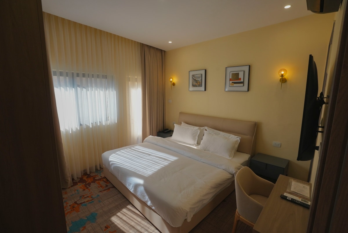 Enjoy a calm and comfortable stay at this hotel, perfectly located in Jabal Al-Weibdeh, one of Amman’s most charming and historic neighborhoods. Despite being just minutes away from Downtown Amman and Paris Circle, the hotel is nestled on a quiet street, offering a peaceful retreat after a day of exploring the city. It’s perfect for guests seeking a central yet tranquil stay in Amman.