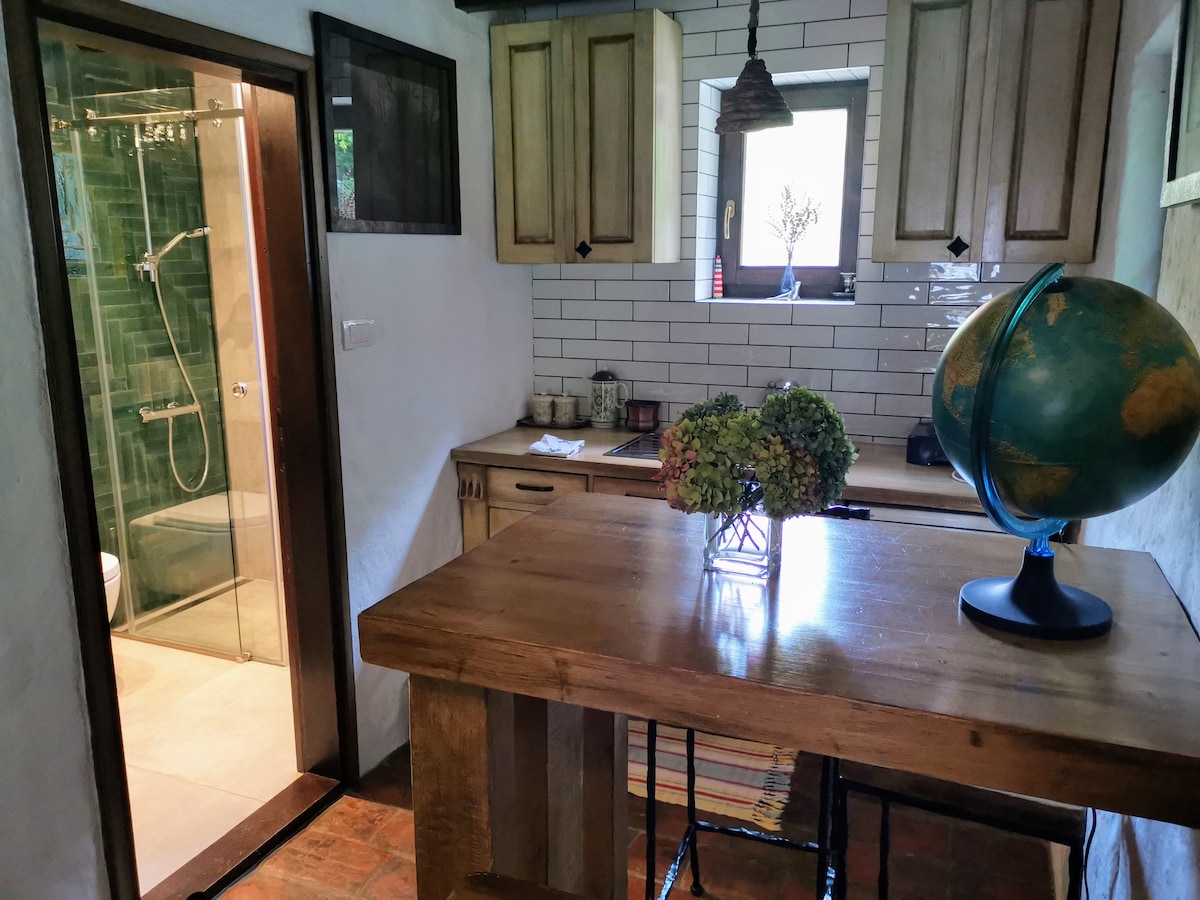 Vajat - rumah desa tradisional Serbia, benar - benar baru, lengkap, dibangun dengan batu dan kayu. Tempat tidur double dan single di loteng, sofa tarik di ruang tamu. Vayat terletak di tengah - tengah kepemilikan rumah tangga kami (4ha) di samping hutan di tanah bersejarah Vuk Karadzic (ahli bahasa yang merupakan pendamping utama bahasa Serbia). Anda bisa menggunakan dapur di Vajat. Juga kami menawarkan dapur organik tradisional Serbia dengan harga tambahan.
