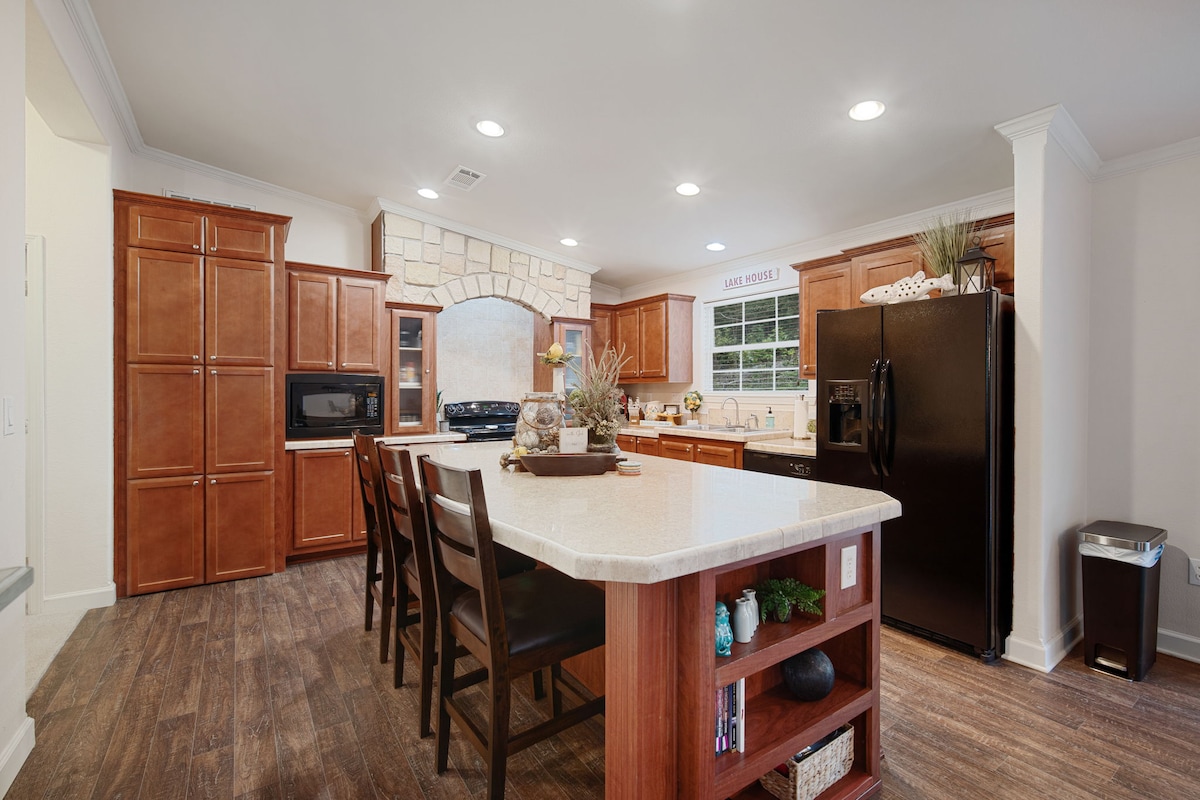 Bersantailah dan bersantailah di tempat yang tenang dan bergaya ini. Suite 1 kamar tidur ini memiliki pemandangan Danau Tenkiller yang indah dari ruang tamu, kamar tidur, dan balkon yang luas. Big Hollow Hideaway hanya berjarak 15 menit berkendara ke Tahlequah dan hanya 5 menit berkendara ke Blue Water Bay Marina. Anda akan berada dalam jarak berjalan kaki atau berkendara dengan kereta golf singkat dari akses Danau! Datang dan menginaplah di danau!