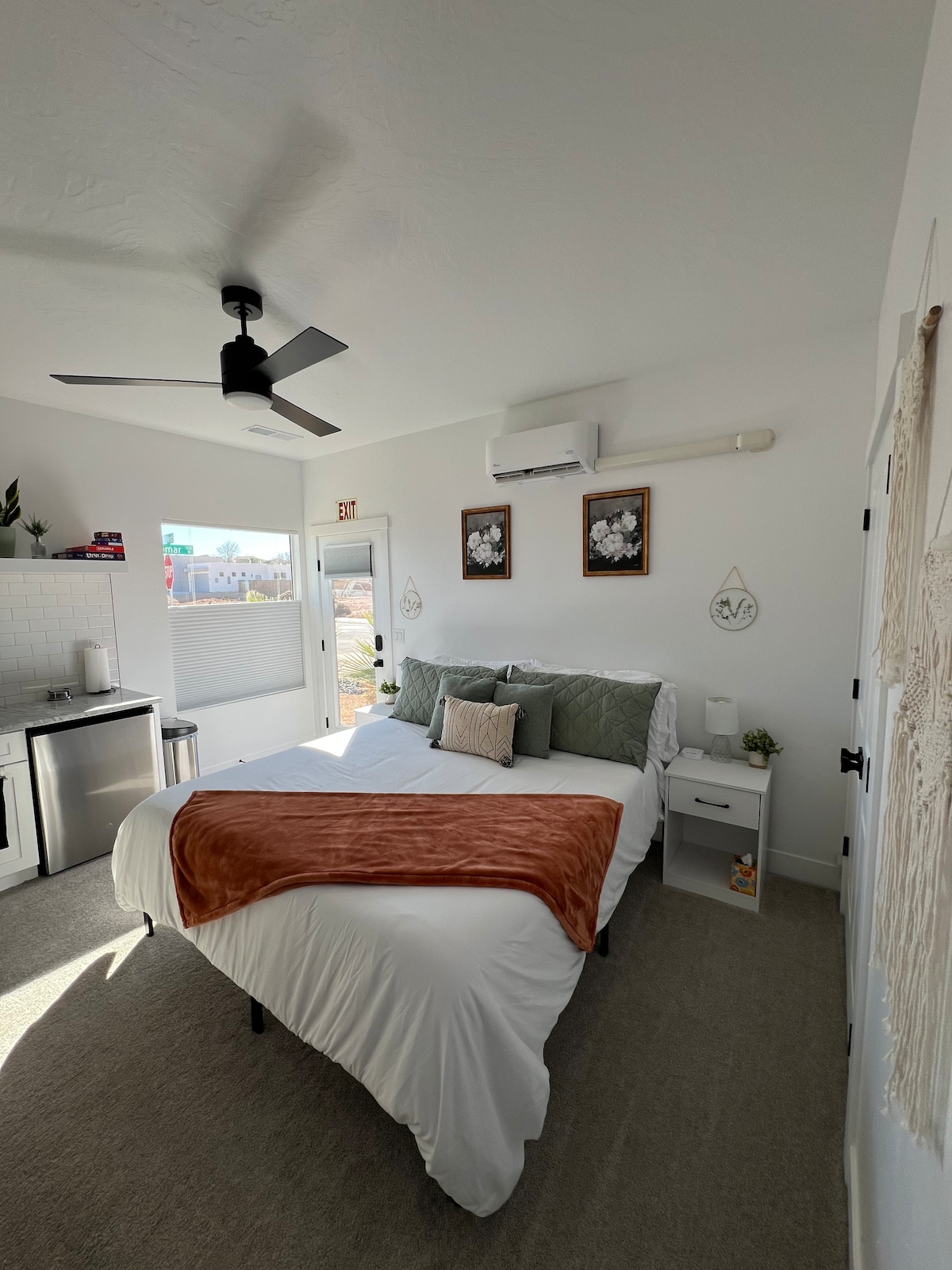 Nyaman namun luas, studio pribadi dengan tempat tidur queen, nuansa gelap, kamar mandi besar, laundry di unit, dapur lengkap, pemanggang, & perapian, memiliki semua yang Anda butuhkan untuk bersantai dan merasa seperti di rumah sendiri! Parkir gratis di luar jalan, patio pribadi, dan pintu masuk tanpa kunci. Akses tanpa tangga ke semua area. Lokasi prima, ideal untuk pencinta alam dan pencari petualangan luar ruangan! Studio ini berjarak 30 menit ke Taman Nasional Zion dan St. George, dan dekat dengan beberapa taman Nasional dan Negara lainnya.