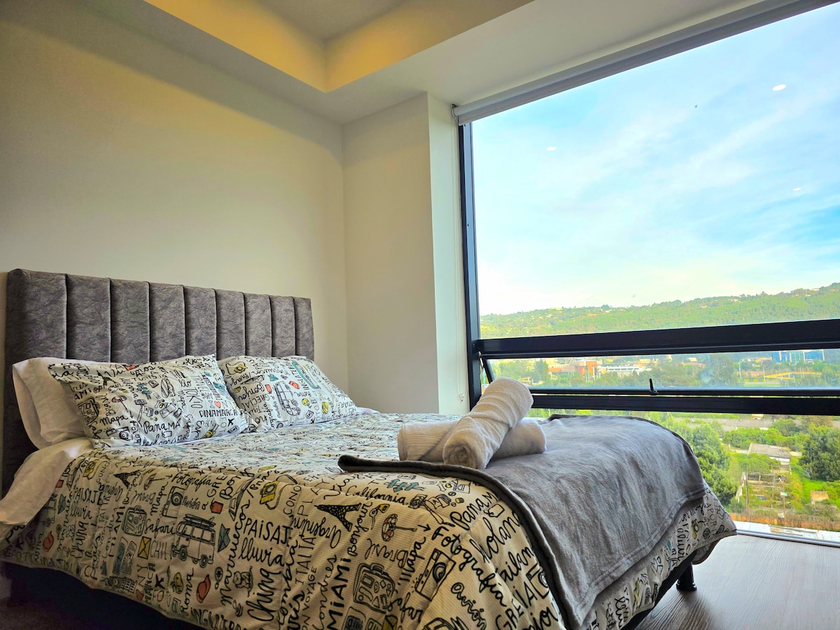 Apartemen studio yang nyaman dan modern dengan pemandangan gunung. Tempat yang ideal untuk belajar, bekerja, dan bersantai dengan nyaman. Lokasinya sangat dekat dengan Universitas La Sabana, dikelilingi oleh 3 pusat perbelanjaan, banyak restoran, dan pasar swalayan. Lokasinya di tempat di mana Anda akan memiliki semua yang Anda butuhkan. Gedung ini menawarkan berbagai fasilitas seperti: Gym, meja biliar, meja hoki udara, ruang kerja bersama, mesin penjual otomatis, teras yang indah dengan api unggun dan area barbeku.