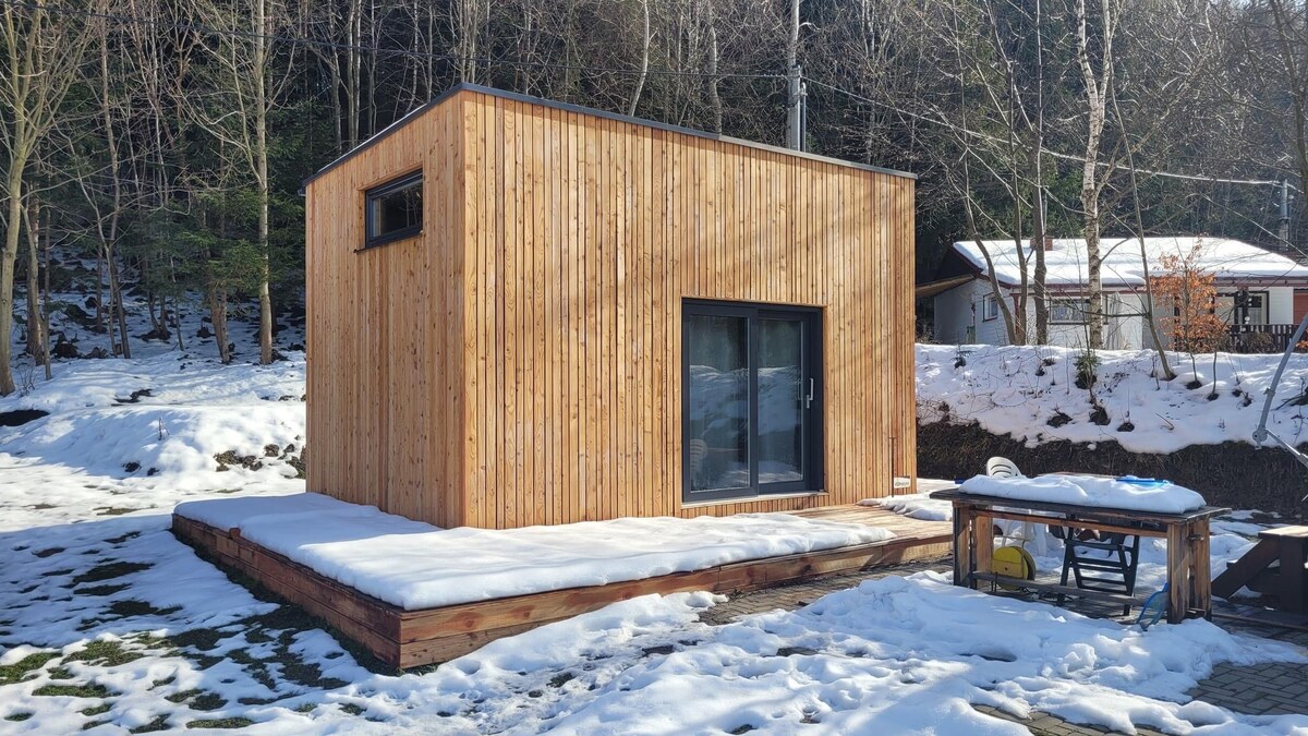 Rumah mungil modern dengan langit - langit tinggi. RUMAH KECIL, terletak di pusat Pegunungan Beskydy, di desa Trojanovice. Chalet modern ini berada tepat di samping hutan dan merupakan tempat yang sempurna bagi para pencinta alam. Chalet ini terletak dalam jarak berjalan kaki dari kereta gantung yang dapat membawa Anda ke Pustevny dengan nyaman, tempat Anda dapat menikmati pemandangan indah dan alam yang indah. Kamar mandi: Pancuran walk - in modern, handuk segar, dan perlengkapan mandi. Fasilitas lainnya: Wi - Fi, pemanas, teras luar ruangan, kemungkinan barbekyu.